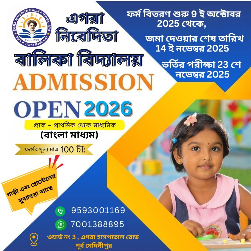 🎀 এগরা নিবেদিতা বালিকা বিদ্যালয় — প্রতিটি মেয়ের স্বপ্নকে বাস্তবে রুপান্তরিত করার জন্য বদ্ধ পরিকর।